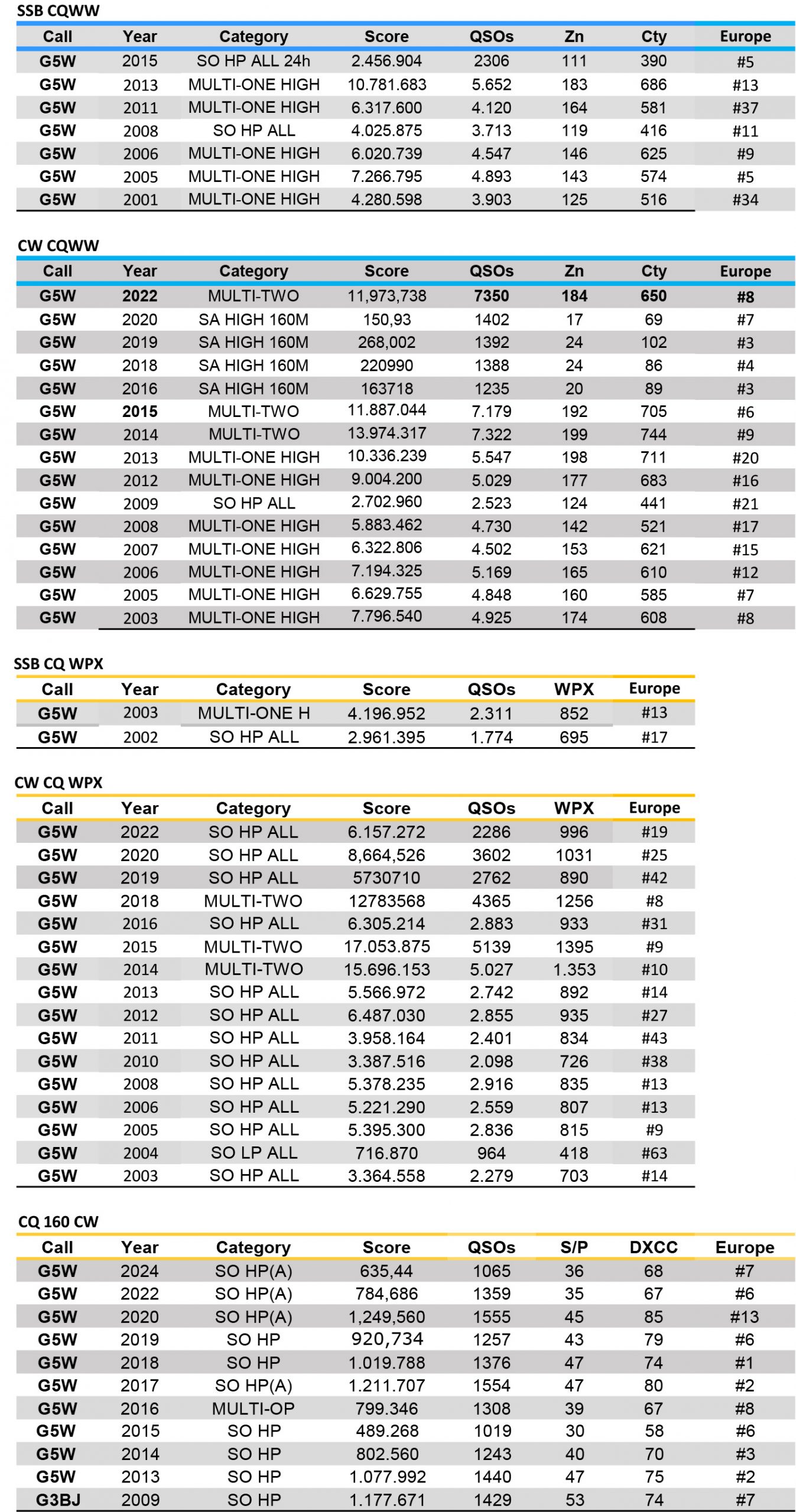 G3BJ / G5W CQ Contest Results